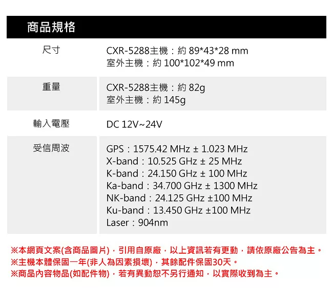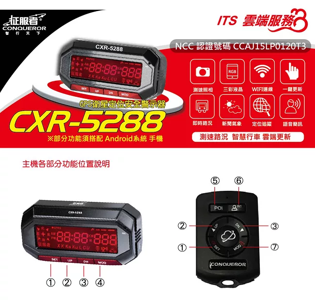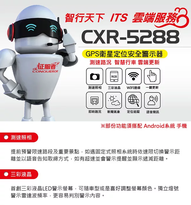 商品推薦:征服者 GPS CXR-5288 雲端服務 分離式 全頻雷達真愛橋-真愛橋懶人包測速器 (送免費基本安裝服務)